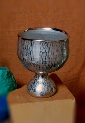 クラフトフェアで購入した、錫打ち出しの小さいカップ?お猪口?